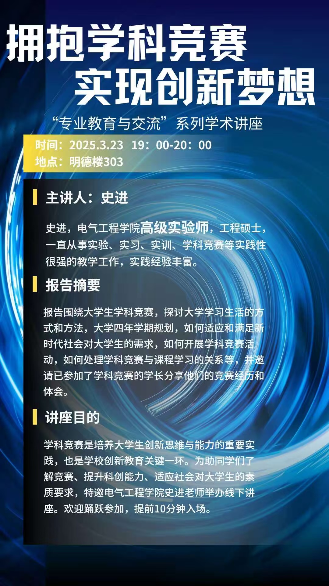 太阳成集团tyc234cc主页“专业教育与交流”系列学术讲座第二讲预告:《拥抱学科竞赛,实现创新梦想》