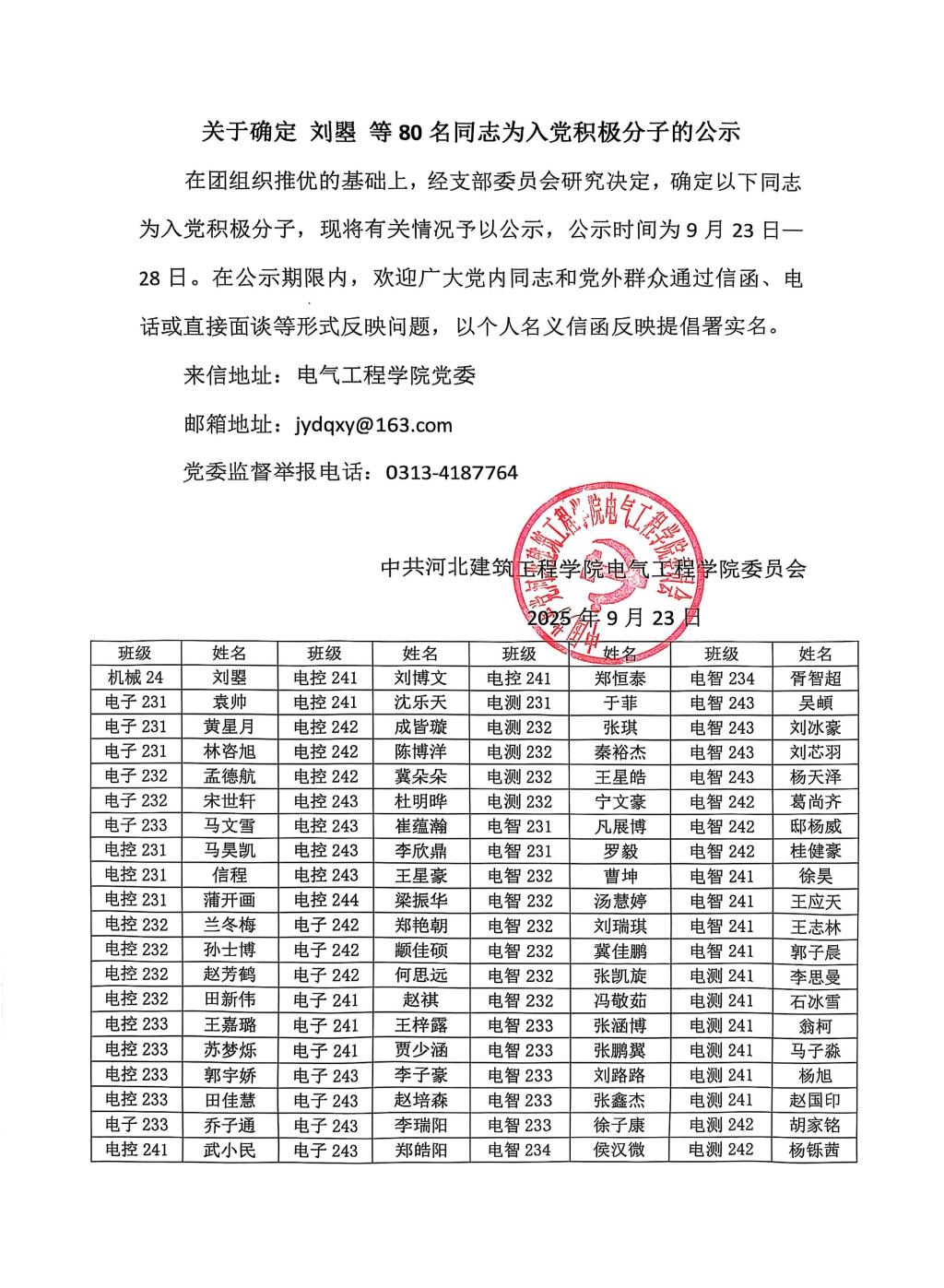 关于确定 刘曌 等80名同志为入党积极分子的公示